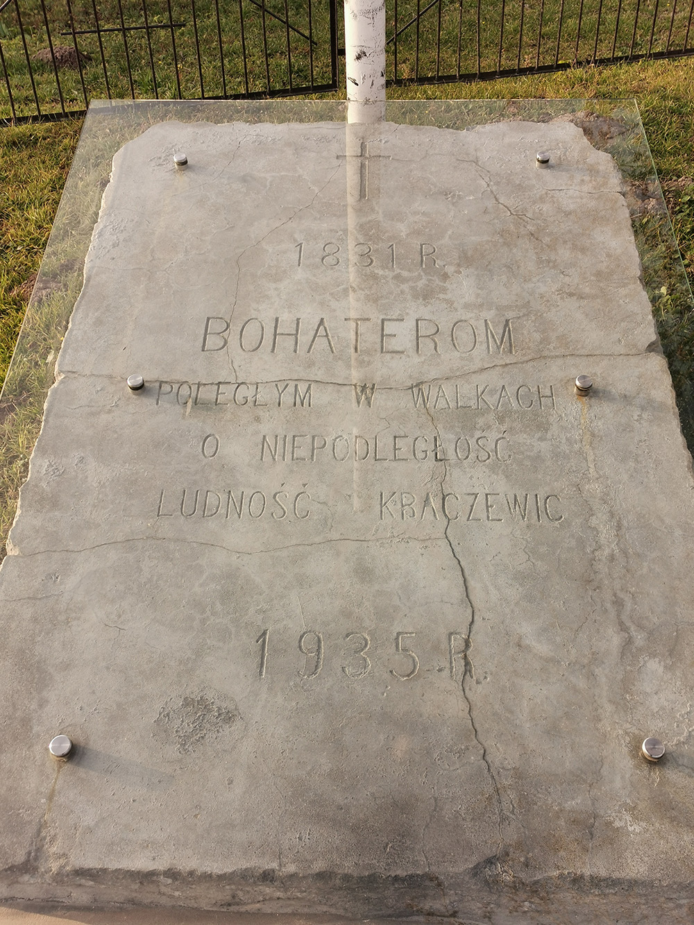 W Kraczewicach Prywatnych w odległości ok. 30 m od drogi powiatowej Poniatowa–Szczuczki znajduje się mogiła powstańcza z 1831 r. Jest to prawdopodobnie jedyne w powiecie miejsce pochówku powstańców zabitych podczas walk z Rosjanami w kwietniu 1831 roku. Przypuszcza się, że leży tam kilkudziesięciu ułanów generała Juliana Sierawskiego, poległych w bitwie pod Wronowem, która rozegrała się 17 kwietnia 1831 r., a straty wojsk polskich wyniosły w tych okolicach blisko 200 ludzi.
